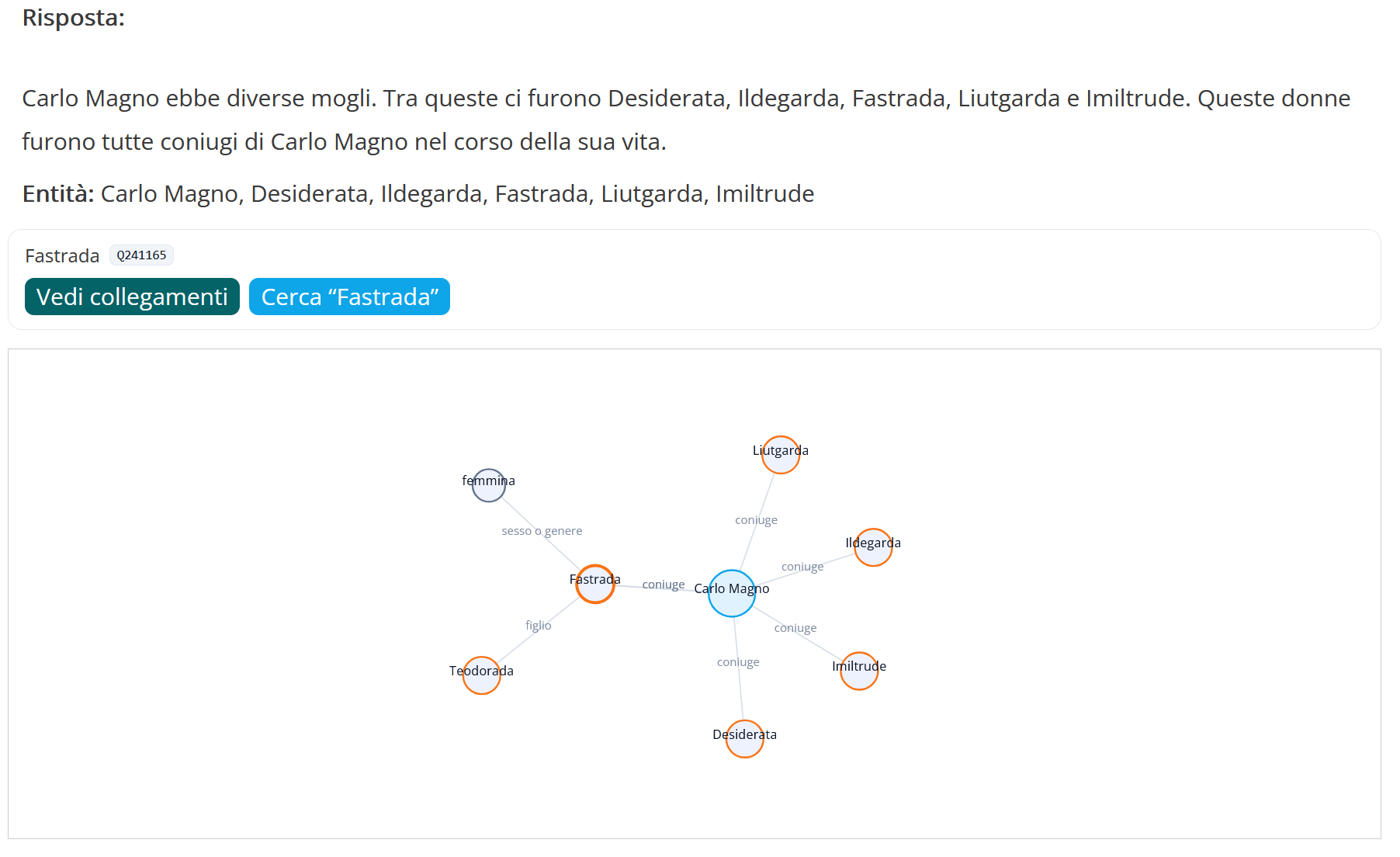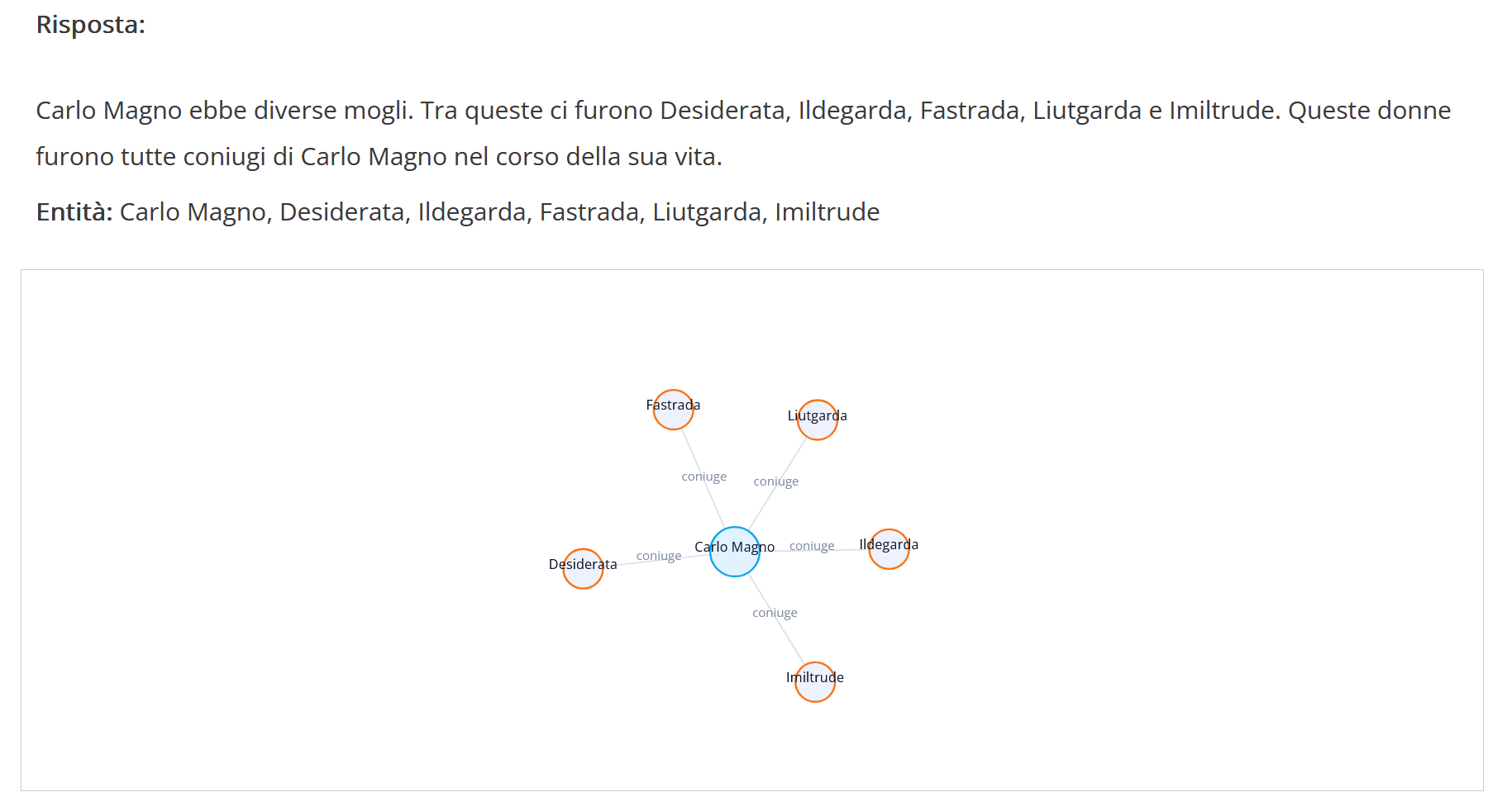 Il sistema genera la risposta ed evidenzia le entità e genera un grafo.